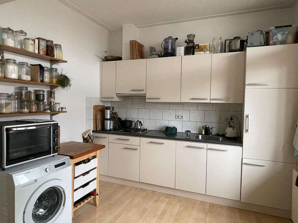 Op de overloop vind je ingang van het appartement met toegang tot een apart toilet. Via de entree kom je terecht in de lichte woonkamer met open keuken. Hier is voldoende ruimte voor een fijn zit- en eetgedeelte. De woonkamer is gelegen aan de achterkant van de woning. De woonkamer loopt over in de open keuken en deze is voorzien van diverse inbouwapparatuur, waaronder een vaatwasser en wasmachine aansluiting. Via de woonkamer en de open keuken kom je terecht op het balkon. De riante slaapkamer bevindt zich aan de voorkant van het appartement. Hier heb je geen last van geluidsoverlast omdat bij zowel de kozijnen als het glas is gebruikgemaakt van extra geluidwerend materiaal. Vanuit de slaapkamer heb je toegang tot de badkamer met douche en wastafel.